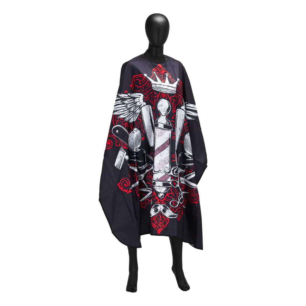 La mantella da parrucchiere J-457 è un elemento essenziale dell'attrezzatura di ogni salone di parrucchiere o barbiere. Aiuta a mantenere elevati standard di pulizia , proteggendo efficacemente il corpo e gli indumenti della cliente dagli schizzi durante i trattamenti tricologici. Verrà utilizzato anche in altri saloni specializzati, compresi i saloni di bellezza. Il motivo decorativo sul davanti aggiunge carattere al mantello.