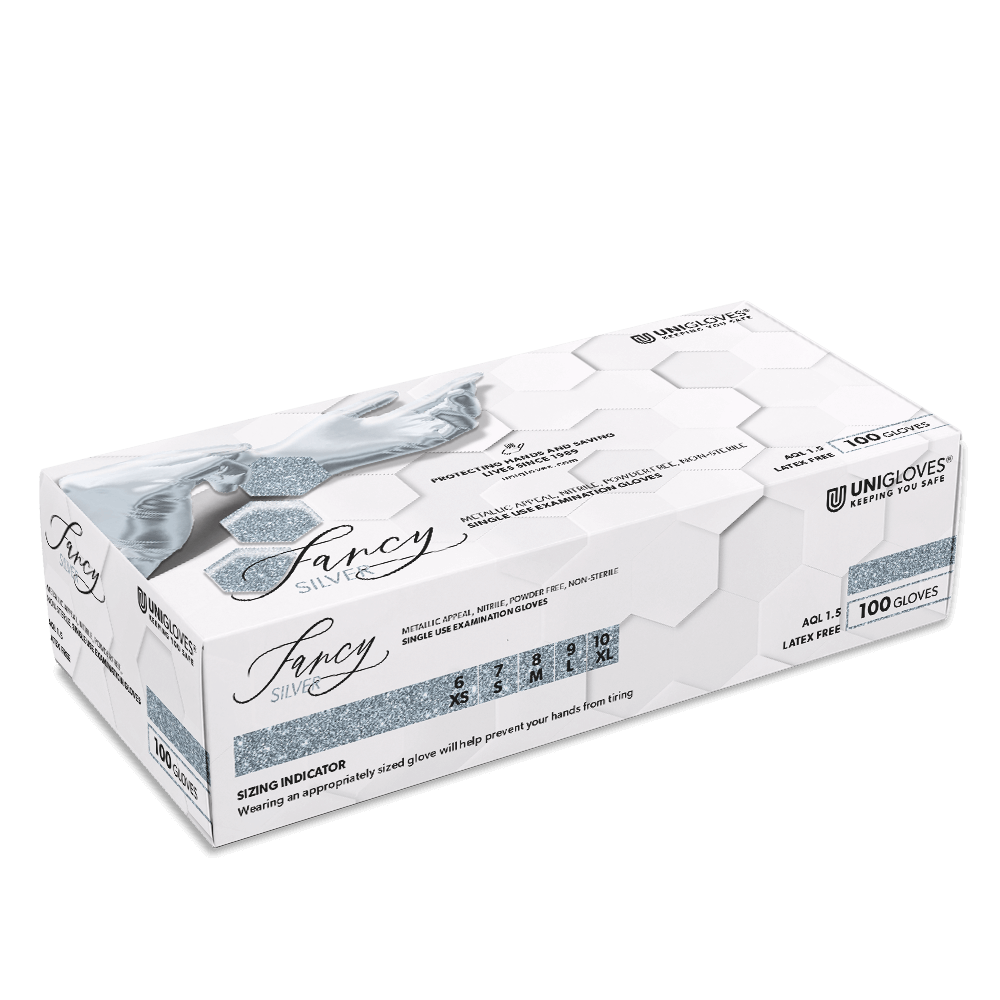 Fancy non è solo espressione di qualcosa di insolito, ma anche del nostro guanto FANCY. Questo accattivante guanto monouso sta suscitando scalpore nel settore della ristorazione, nel segmento lifestyle e nel settore medico. Il suo aspetto brillante sarà un punto culminante per le tue mani. Naturalmente il guanto è conforme al regolamento DPI (UE) 2016/425 e agli standard europei EN 374, EN 420 e EN 455. La punta delle dita ruvida garantisce una presa ottimale durante l'uso e la vestibilità universale consente l'uso ambidestro. Il materiale impermeabile protegge non solo dall'umidità, ma anche da virus, funghi e batteri. Inoltre il guanto FANCY è adatto per alimenti.